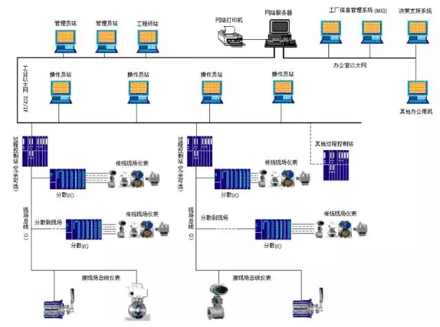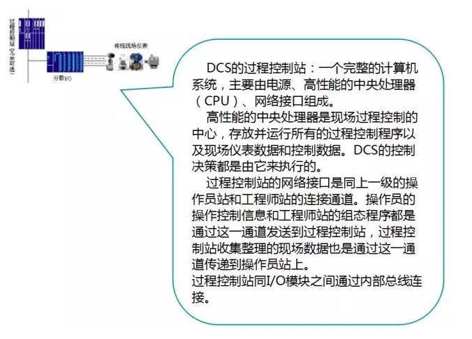 DCS通常采用若干個控制器(過程站)對一個生產過程中的眾多控制點進行控制,各控制器間通過網絡連接并可進行數據交換。