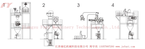 4:人工投料、混合、倉儲、包裝,上下一體結構;