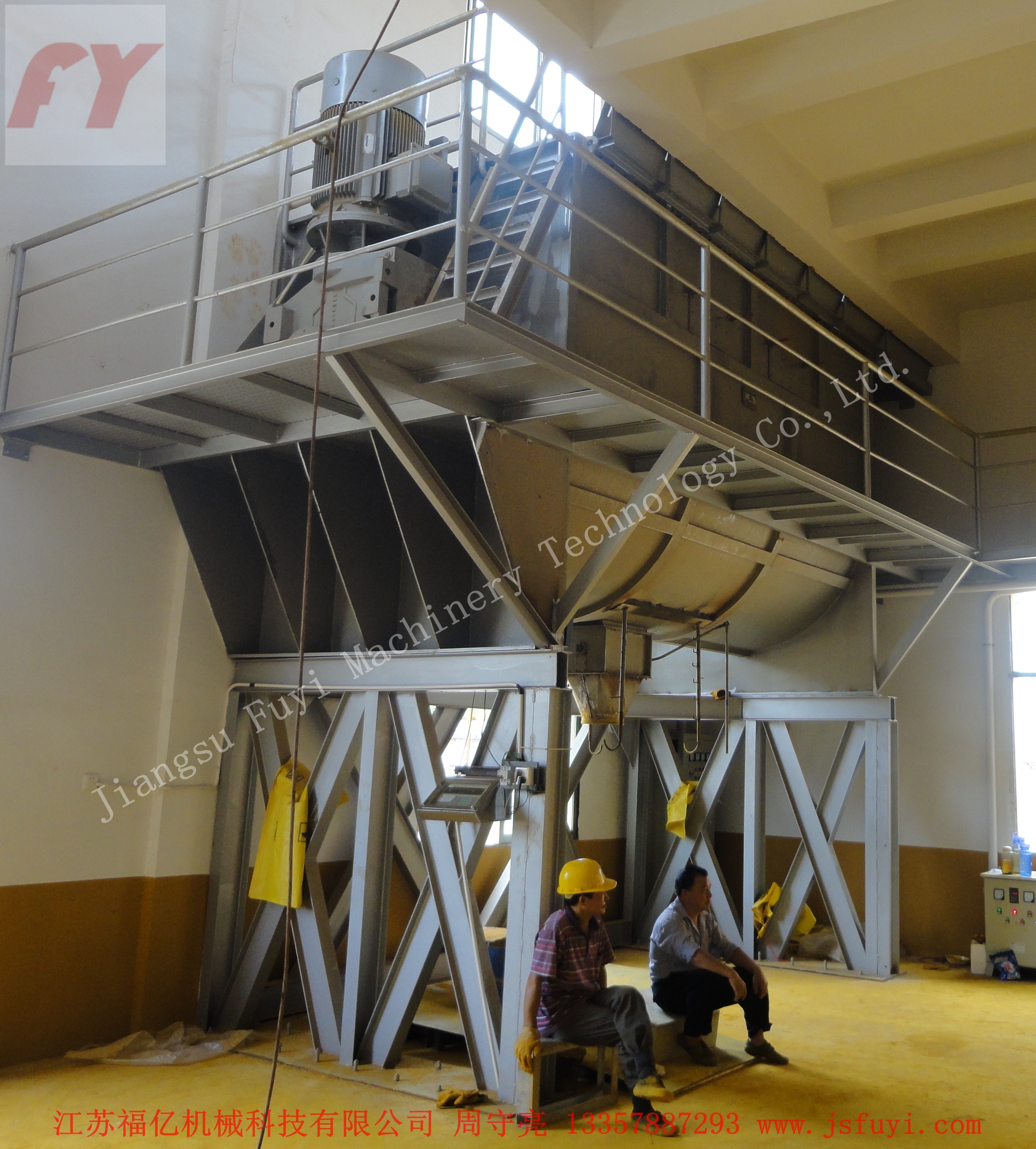 1:使用人工投料平臺,物料混合后螺旋提升入成品倉,下接包裝設備;