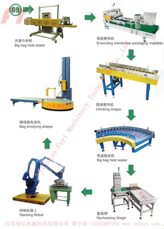 廣泛用于各類軟袋包裝物的碼垛,如袋裝化肥,飼料,糧食,化工原料等。