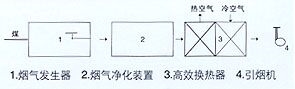 為了得到較為穩(wěn)定的煙道氣和降低勞動強度,燃煤采用鏈條爐排,并配有上煤機、出渣機等,經(jīng)換熱后的煙道氣排空。