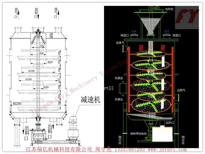 2、由于干燥盤層式布置、立式安裝, 既使干燥面積很大,占地面積也很小。