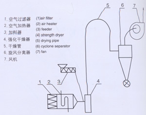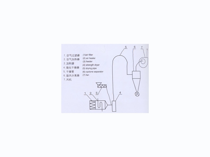 氣流干燥能從易于脫水的顆粒,粉末狀物料,迅速除去水分(主要是表面水份).在氣流干燥中,由于物料在干燥器內停留