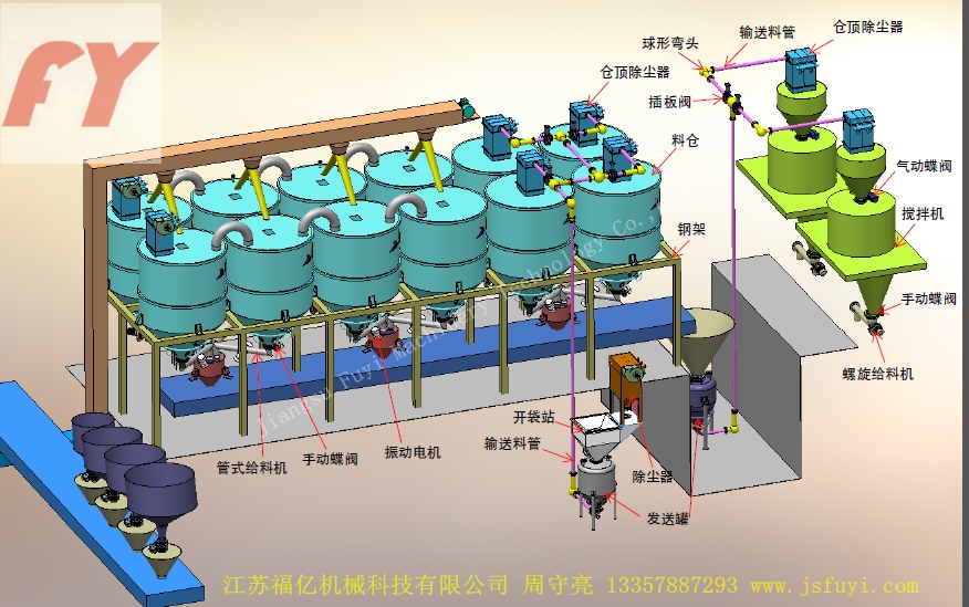 其主要組成部件為發送罐、增壓器、分離器、卸料閥、排氣除塵器、空壓機組、電控柜等。