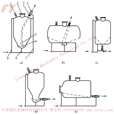 側引沸騰式發送罐,其流化板為傾斜布置,輸料管在發送罐的側面,物料沿著流化板的傾斜方向輸送,這種發送罐結構形式分立式和臥式兩種,臥式常用于散裝物料罐車。